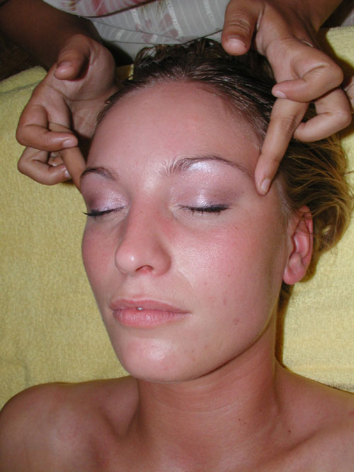 Bei dieser Ayurveda Gesichtsmassage wird durch sanfte Striche Spannungen unter der Hautoberfläche gelöst. Die Behandlung der Druckpunkte wirkt auf tiefere Gewebe oder reflektorisch auf zugeordnete Organsysteme. Durch das warme Öl wird die Gesichtsmuskulatur entspannt und genährt. Diese ayurvedische Gesichtsmassage hilft die Nebenhöhlen zu entstauen und wirkt Spannungskopfschmerz entgegen.
